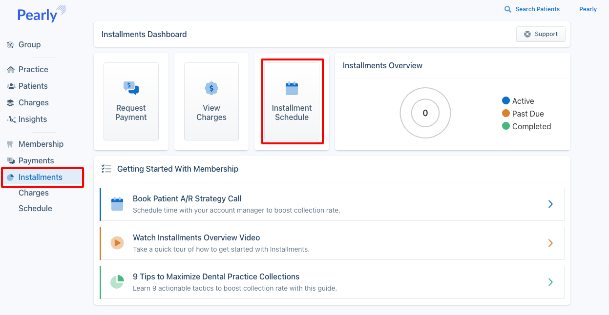 Go to the Installments section located on the left sidebar, then the Installment Schedule button.