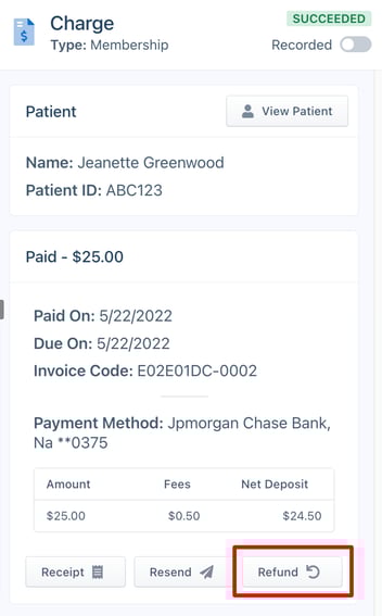 You now can issue a refund to patients from your Pearly Portal. To refund a patient, simply go to the Charges section in the Pearly portal, click on the recent payment you would like to refund, then click the "Refund" button located on the patient profile.