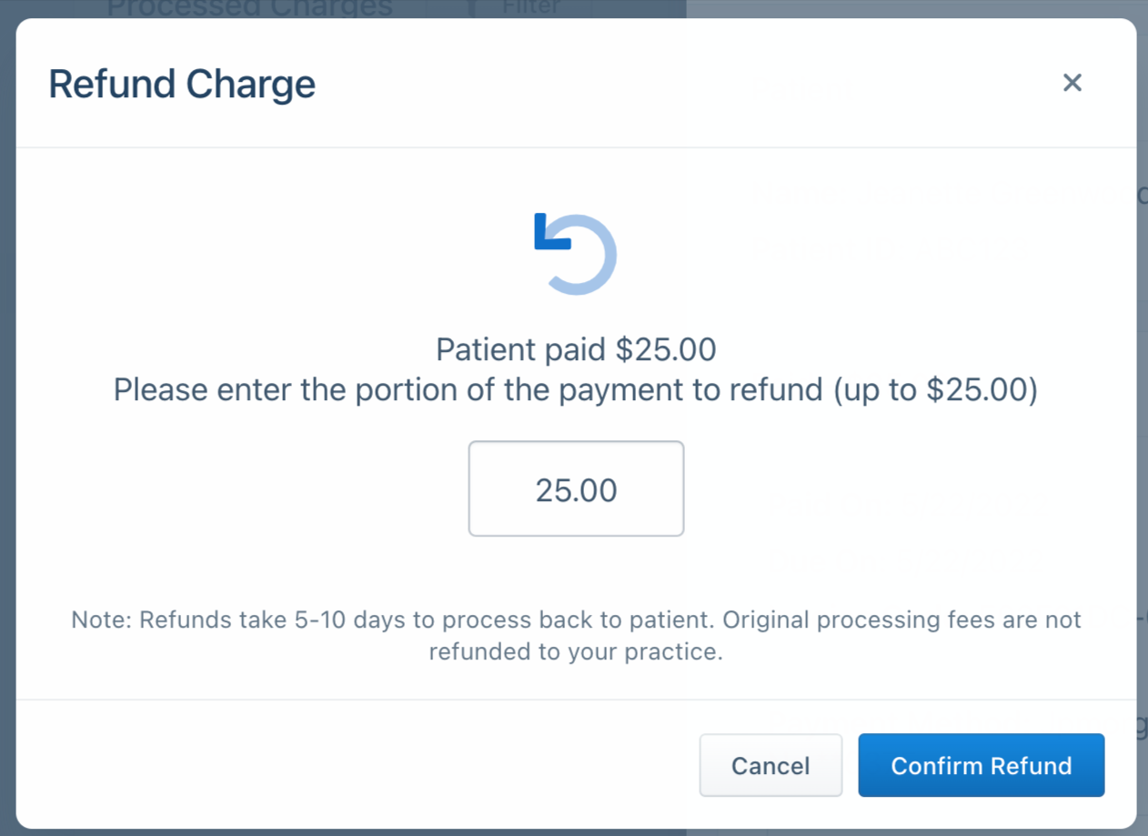 Note that refunds can take 5-10 business days to appear on the patient's statement.