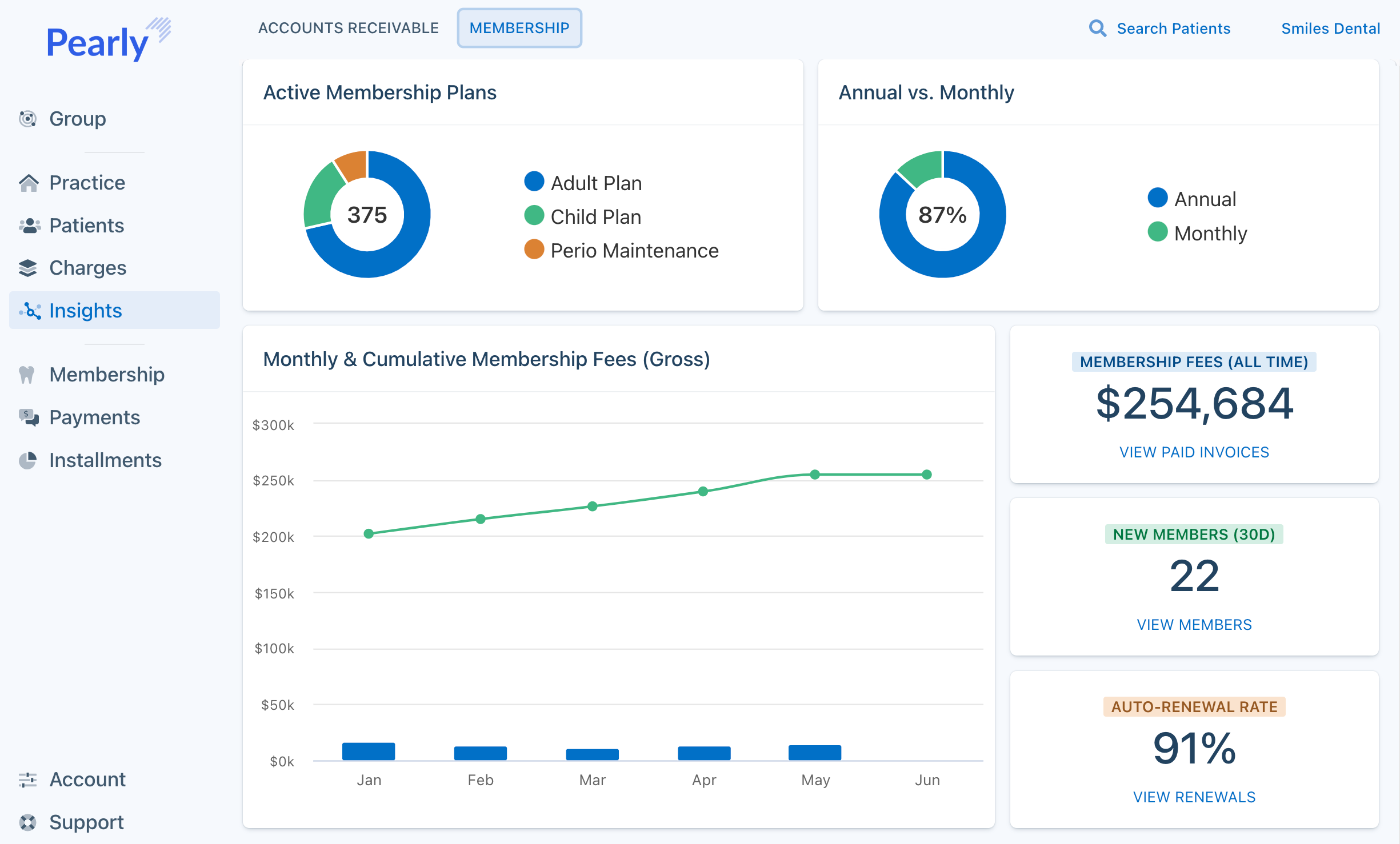 Understanding how your dental membership program is performing is critical for ongoing success. Fortunately, Pearly provides robust metrics so you are always up-to-date.